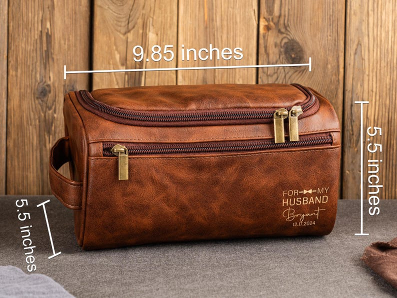 Personalized Men's Leather Toiletry Bag, Groomsmen Gifts, Dopp Kit Men's Leather Accessory, Anniversary Gift for Him, Christmas Gift for Men