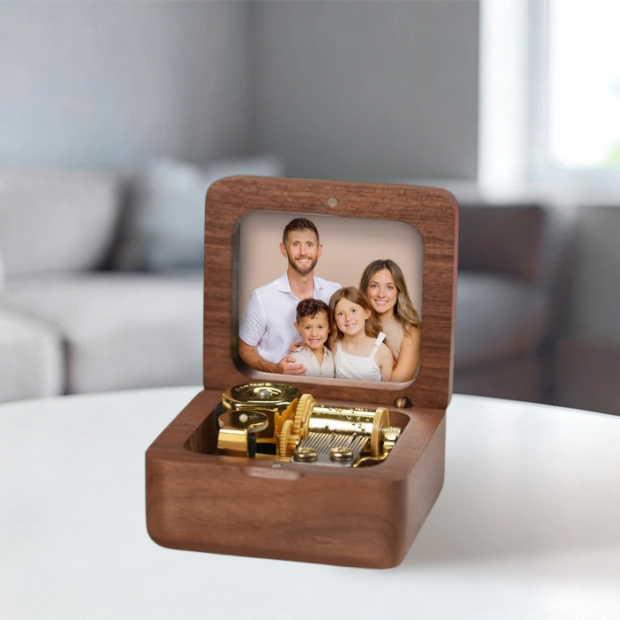 Personalized Music Box with a Custom Metal Melody Mechanism, Wooden Square Music Box