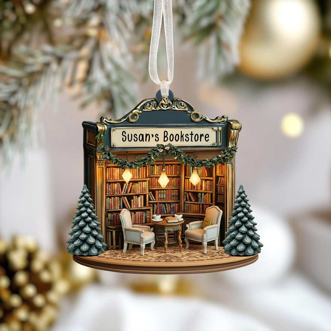 Personalized Bookstore Ornament, Bookish Gift, Christmas Ornament Gift For Book Lovers, Booknerd Gift Custom Book Shop Ornament, Xmas Gift