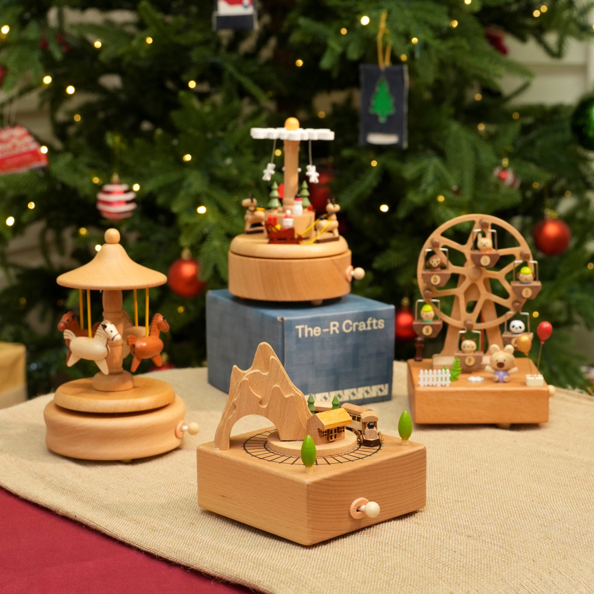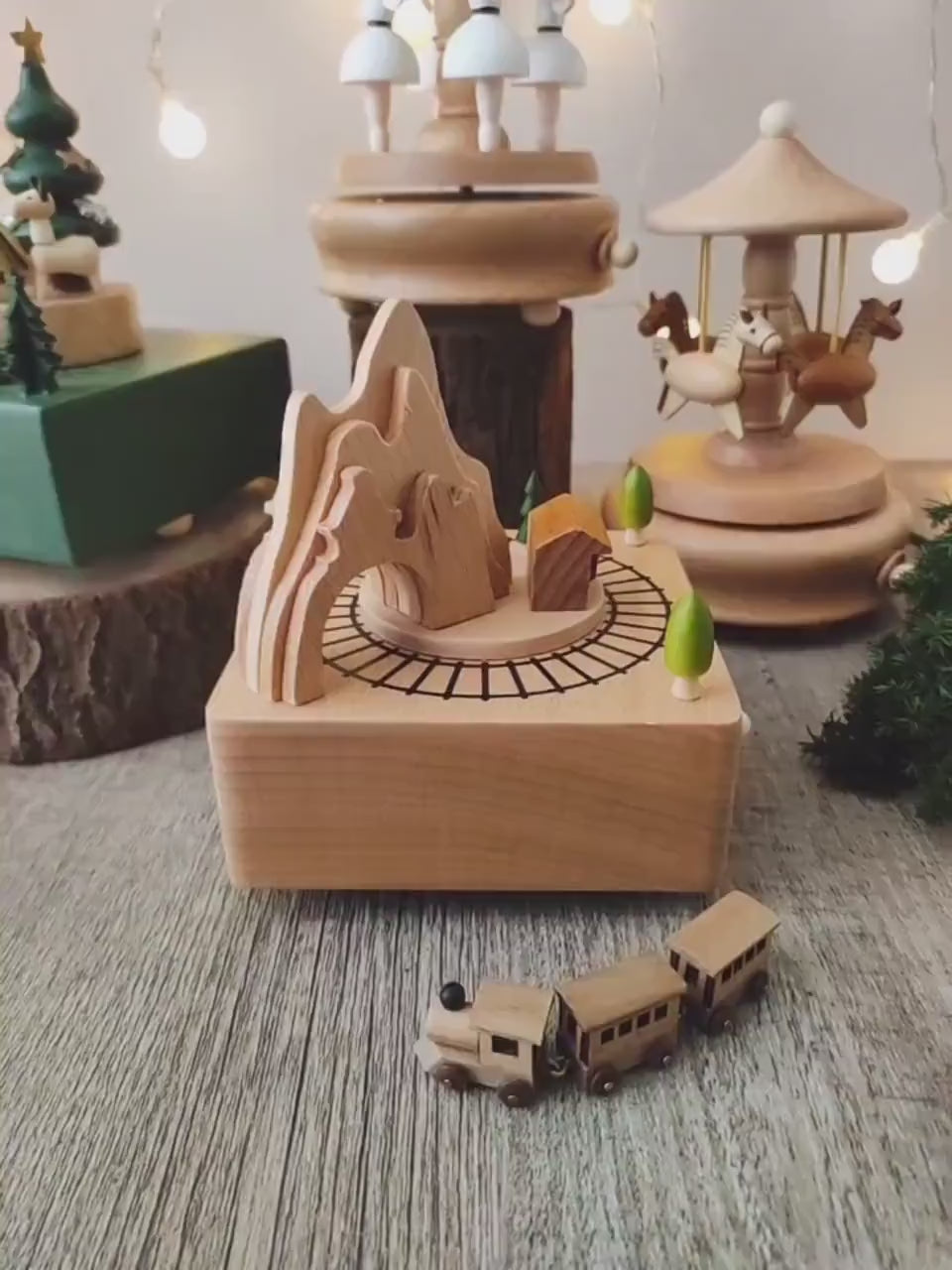 Turn this holiday season into a magical memory for your little one with our handcrafted wooden Christmas music box. Simply wind it up, and the cheerful melody begins to play while a tiny train circles around Santa, the Christmas tree, and the little house — creating a heartwarming scene straight out of a fairytale 🎁.
