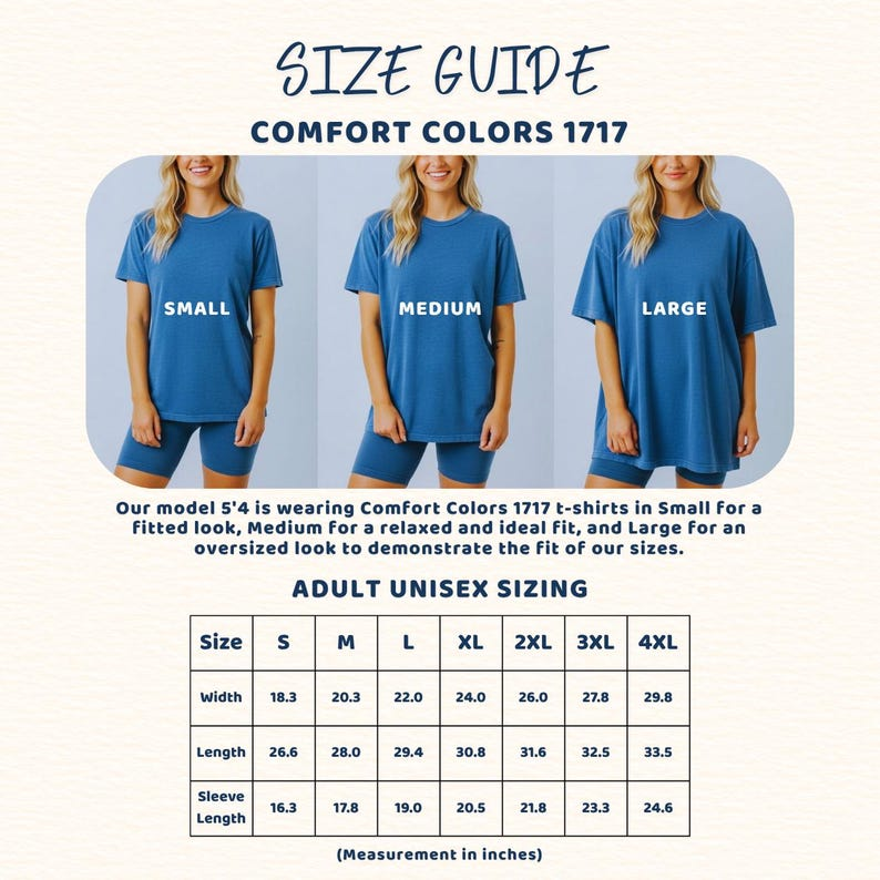 | Size | Chest (in) | Length (in) | Sleeve (in) |
