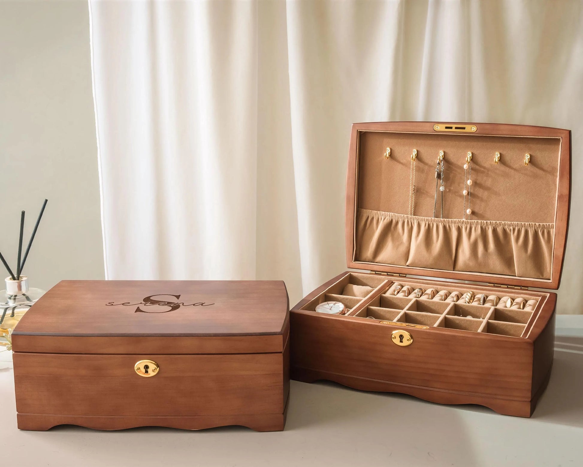 Custom Engraved Wooden Jewelry Box,Personalized Jewelry Organizer,Wedding Gifts for Her,Christmas Gift for Mom, Personalized Gift for Mom