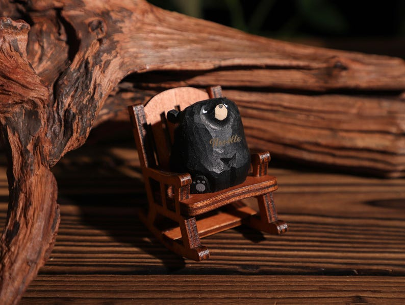 Custom Name Wooden Bears Sculpture, Handmade Wooden Animal Figurine, Home Decor, Wood Pet Figurine, Birthday Gift, Handmade Wooden Gift