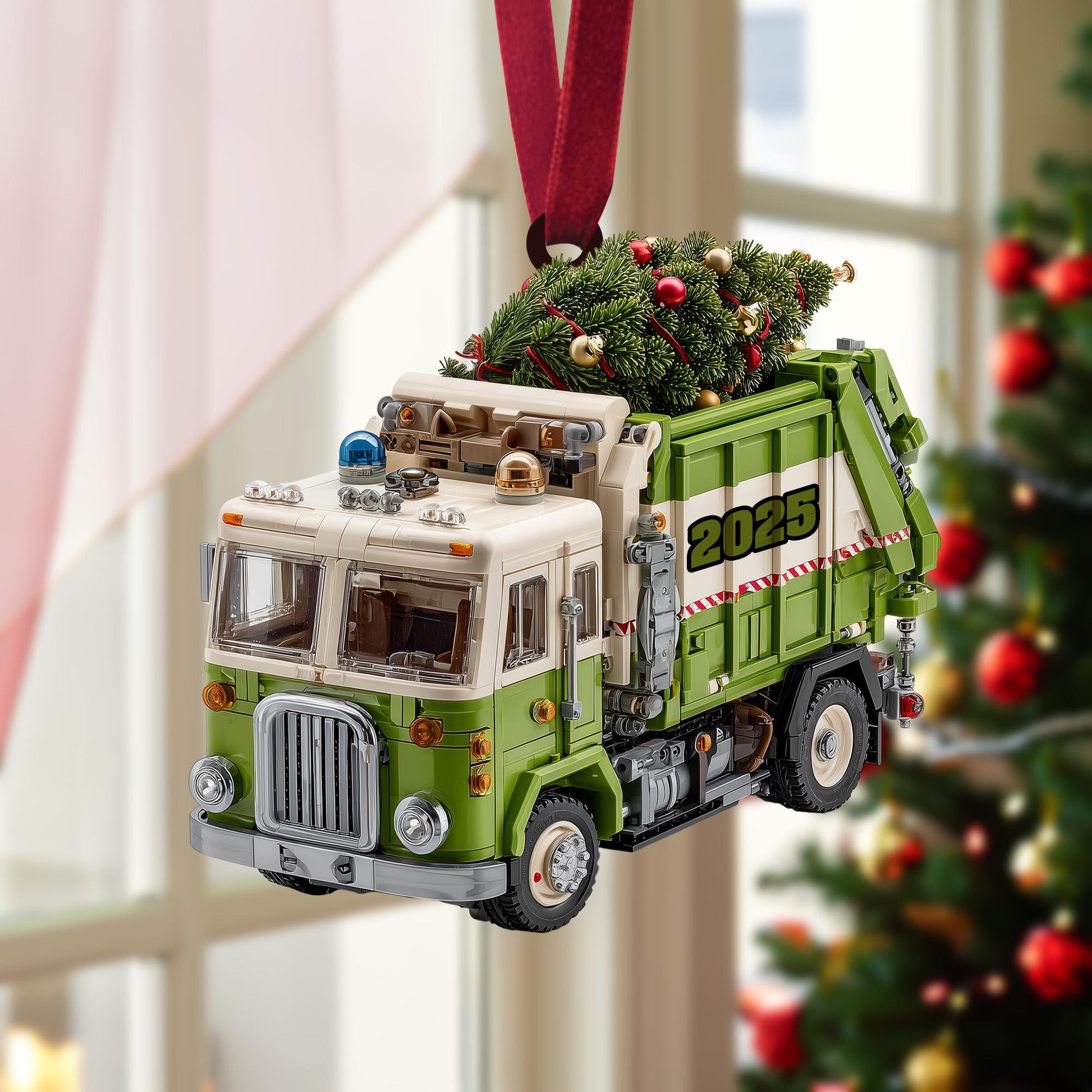 Garbage Truck Christmas Ornament, Green Sanitation Truck with Christmas Tree, Personalized Name Year, Recycling Worker Gift, Holiday 2025