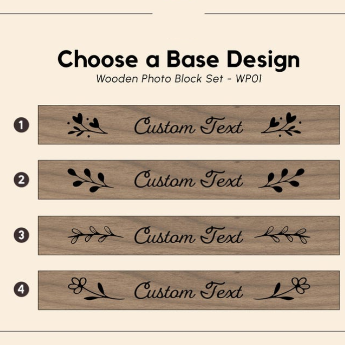 Optional engraved base — choose plain, custom text, or one of four decorative designs.