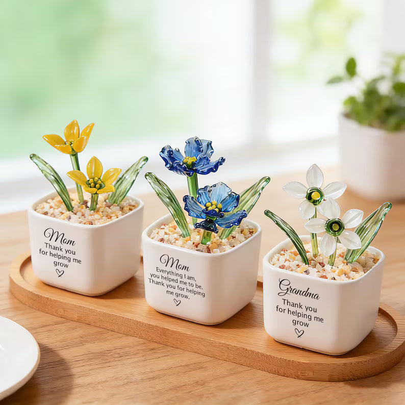 🌸 This glass flower decor is a delicate and meaningful piece designed to celebrate special moments with beauty and simplicity. Inspired by botanical designs, each piece features handcrafted glass flowers arranged in a charming mini pot, creating a timeless decorative display that brightens any space.