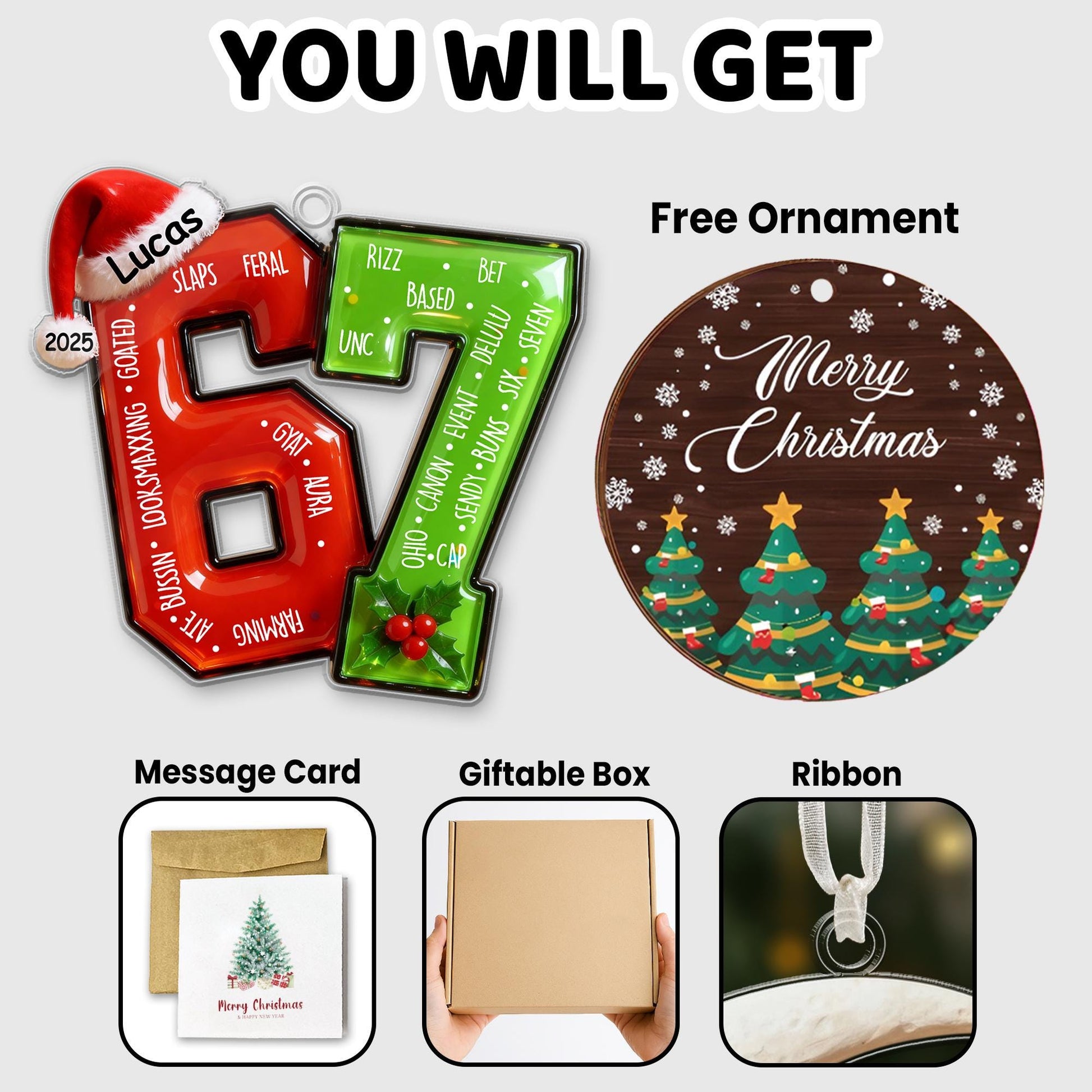 Funny Teen Slang Ornament 67, Custom Name Christmas Ornament for Teens, Gen Z Meme Ornament, Cool Boy Gift, 2025 Trend Ornament
