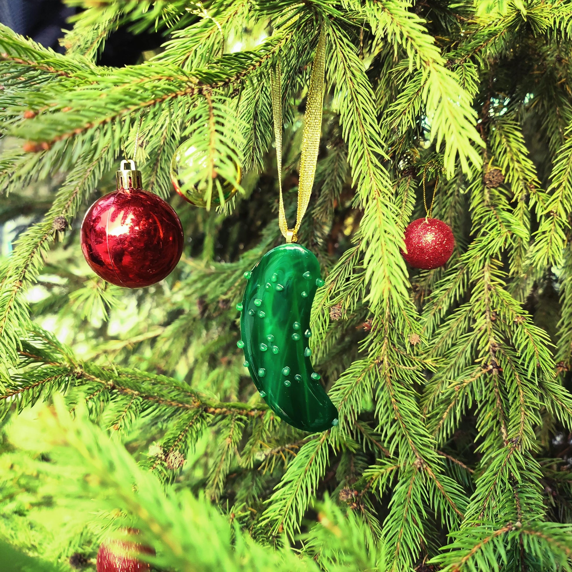 Glass Christmas Pickle Ornament. Fun Christmas Gift for Tree Decor. Unique Holiday Tradition Keepsake. Handmade Glass Pickle for Xmas Tree