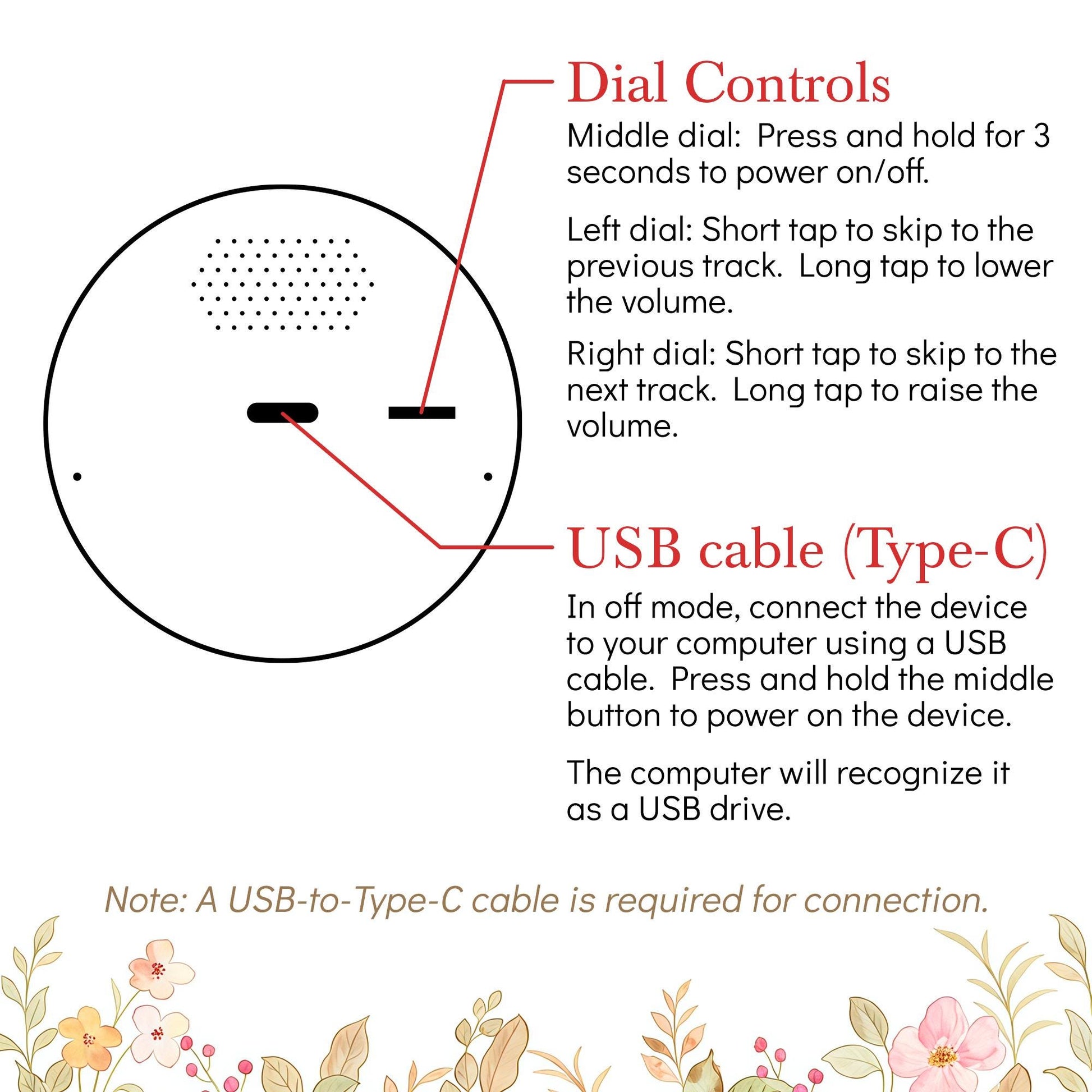 Intuitive Controls: Adjust playback, volume, and file selection effortlessly with a simple dial.