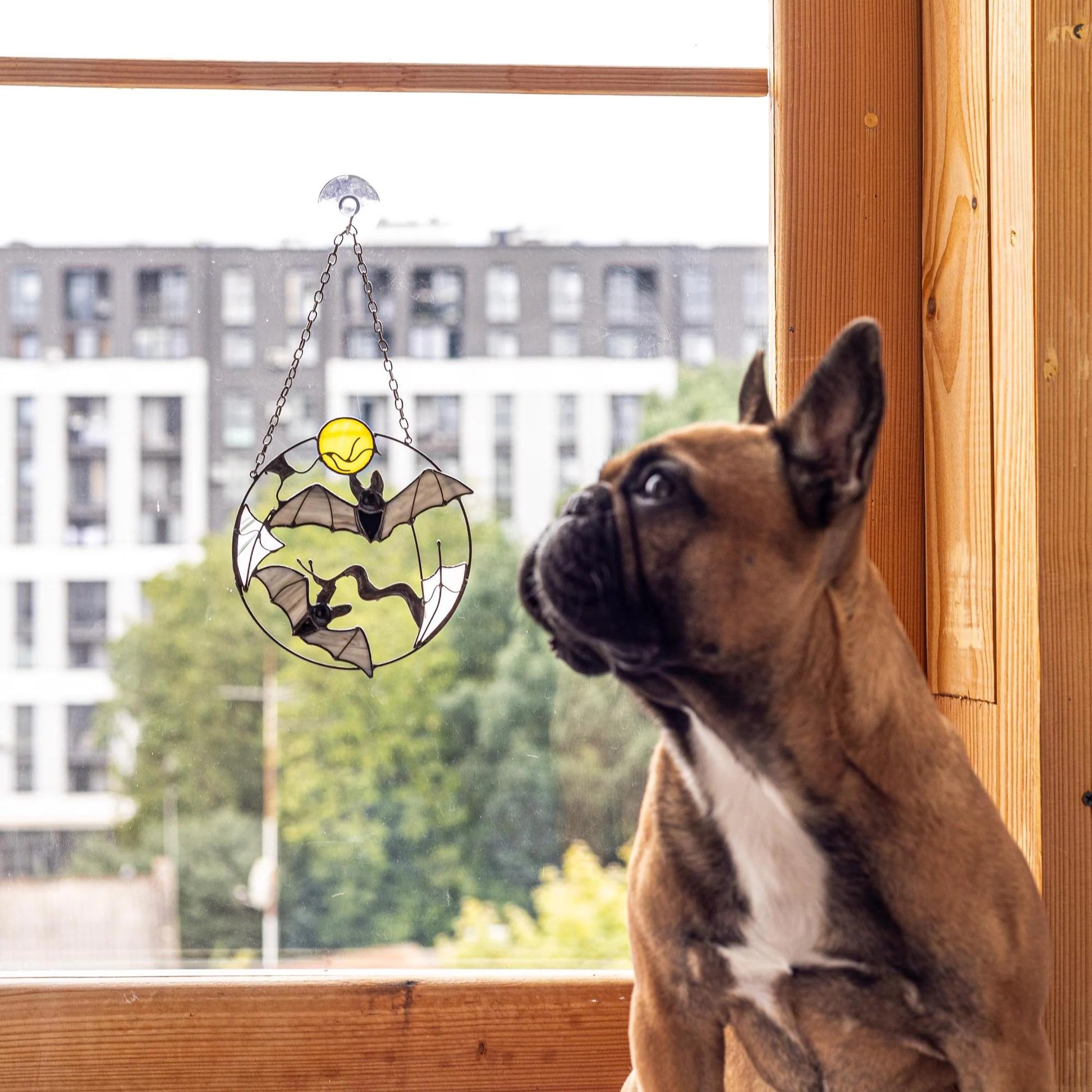 Gothic Suncatcher Bat Moon Halloween Stain Glass ORIGINAL Horror Picture Home Decor Spooky Window Wall Hanging Dark Cling Witch gift