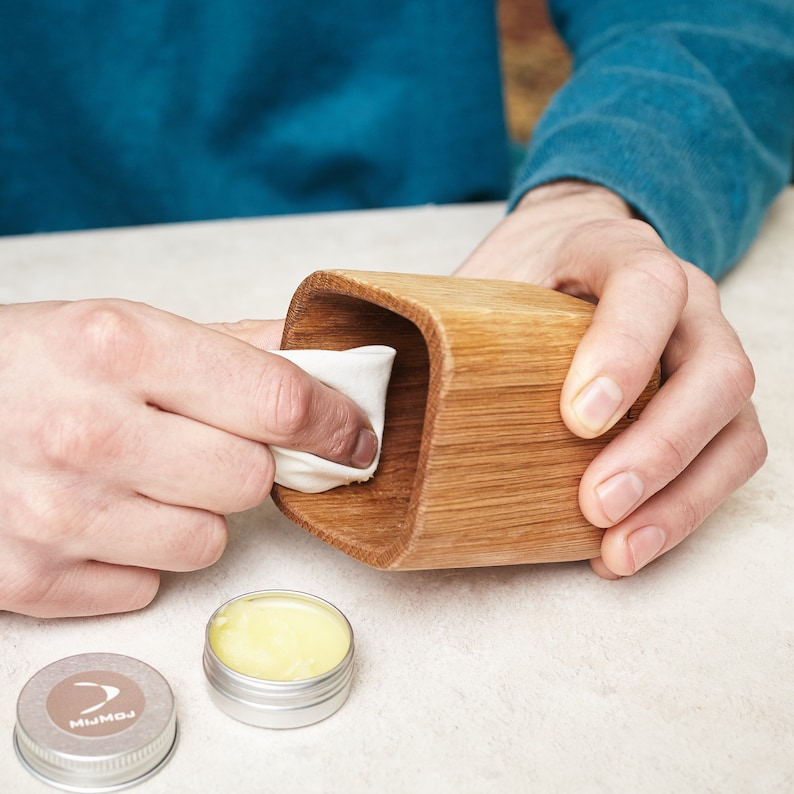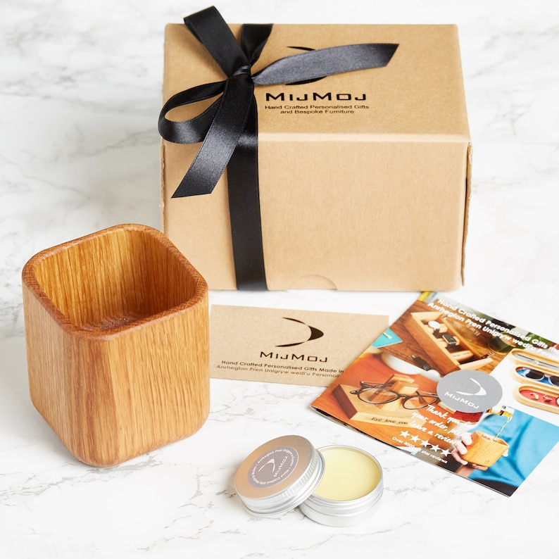 Supplied with a small tin of beeswax oil paste and care instructions to preserve the tumbler