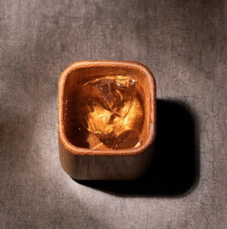 Natural oak insulates the drink, keeping whiskey cool and enhancing flavor