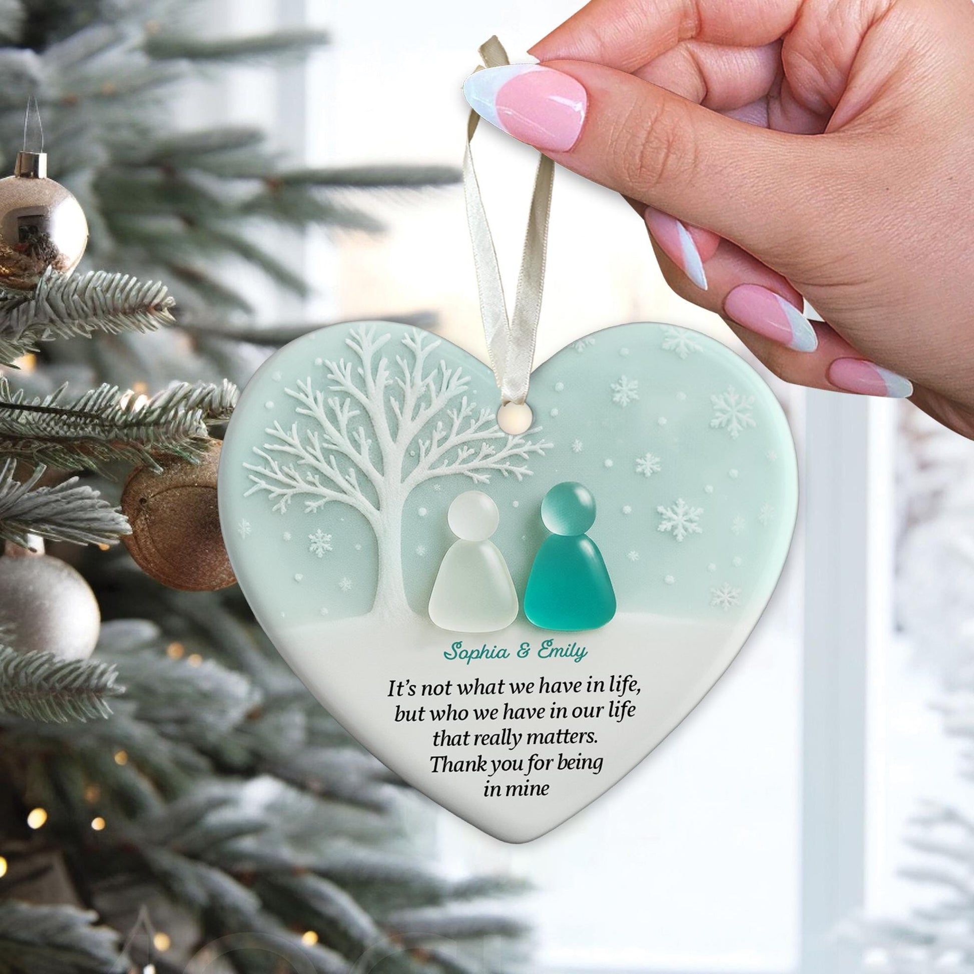 Personalized 2D Friendship Sea Glass Ceramic Ornament: Best Friend Christmas Gift