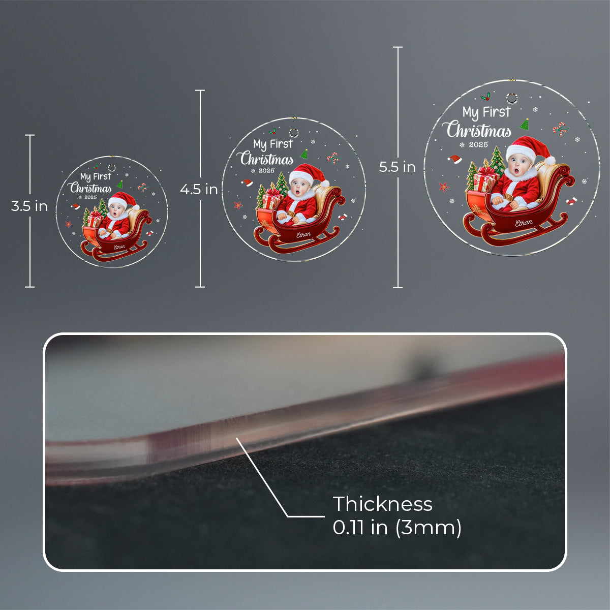 Personalized Baby 1st Christmas Custom Photo Adorable Little Santa Acrylic Circle Ornament
