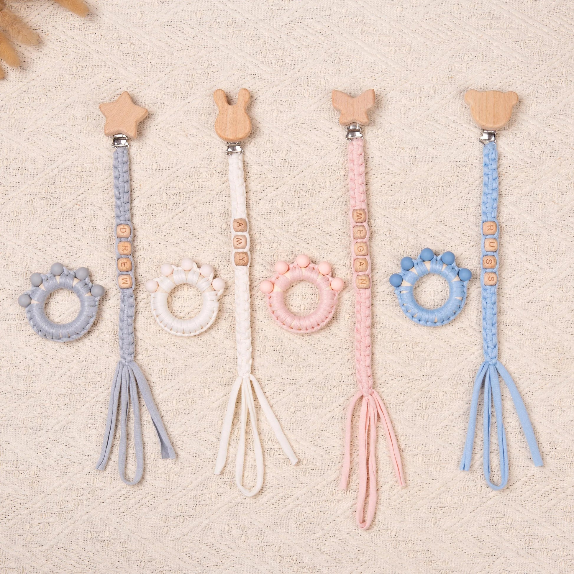 Personalized Braided Pacifier Clips and Rattles for Baby Boy and Girl, Baby Shower Gifts, New Baby Gift, Unique Baby Gift Set, Newborn Gifts