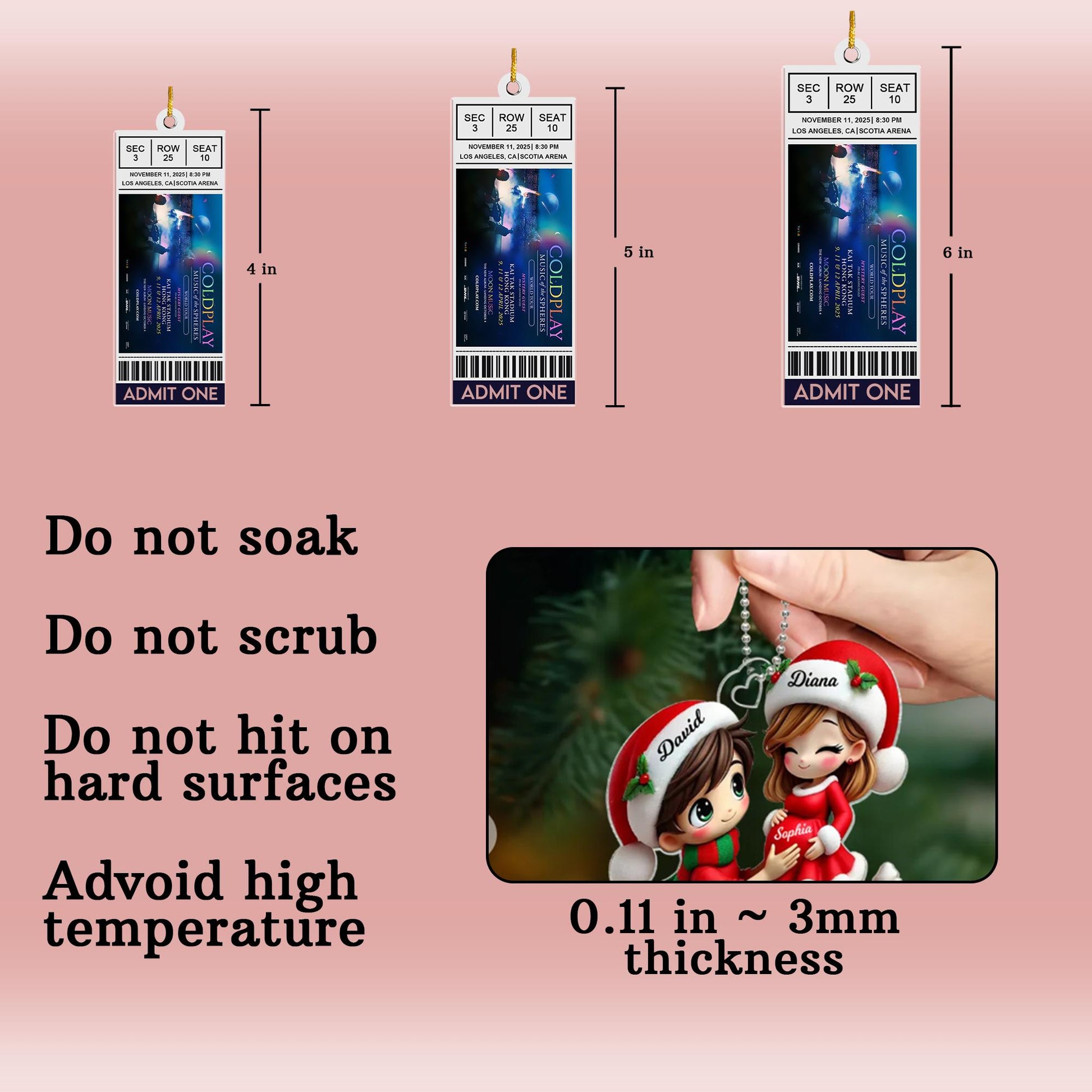 Personalized Concert Ticket Acrylic Ornament: Favorite Music Keepsake Gift, Personalized Music Event Keepsake, Any Band, Concert, Live Show