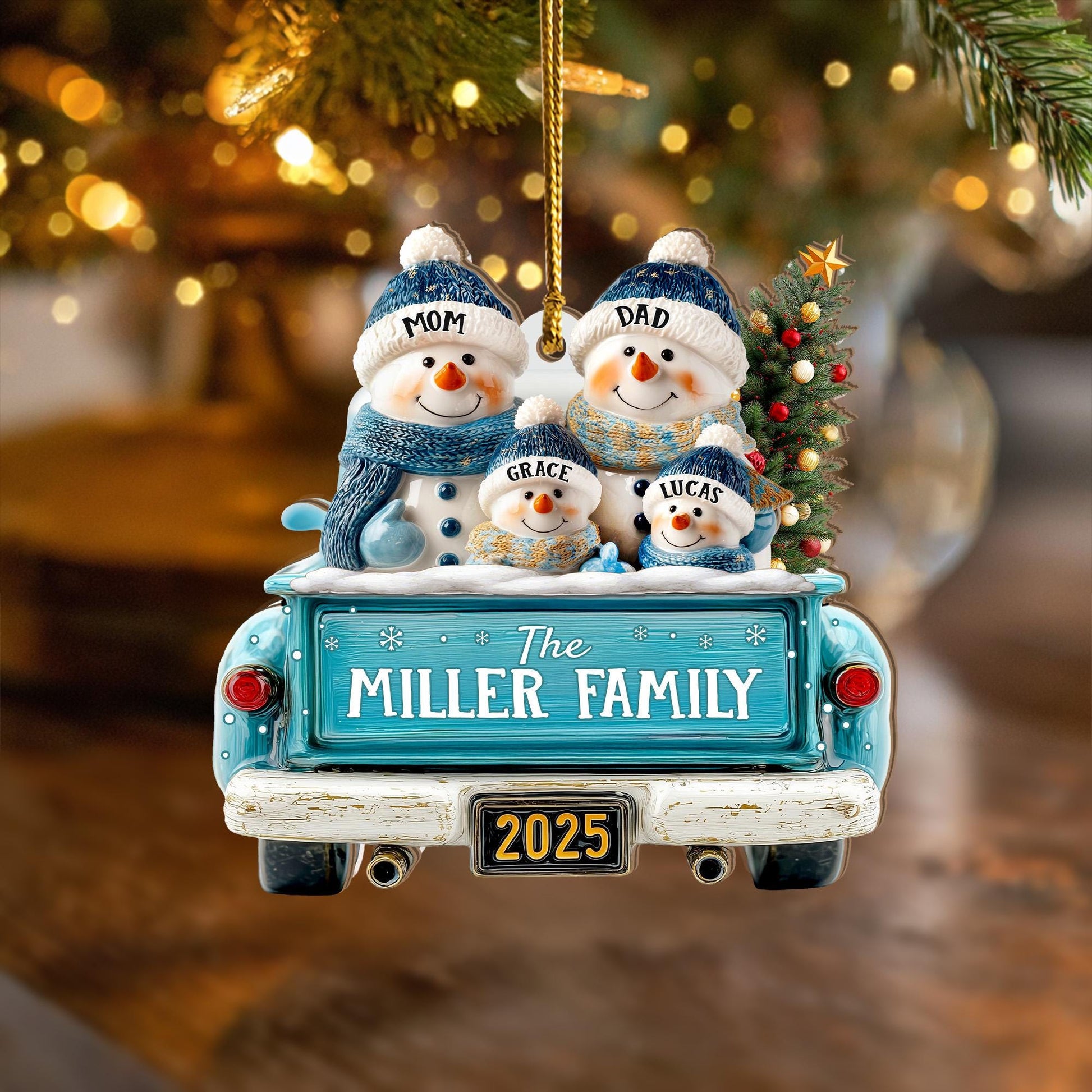 Personalized Snowman Family Ornament, Custom Family Of 3 4 5 6 Christmas Ornament, Red Truck Christmas Ornament, Christmas Tree Decor