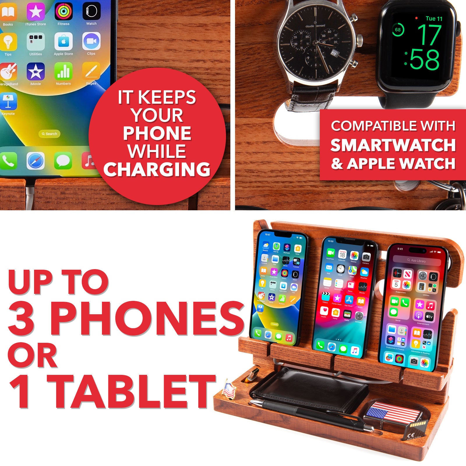 Wood Personalized Docking Station for Cell Phone, Tablet, Wallet, Gadgets, Watch, Keys, Accessories, Desk Organizer, Gifts for Men (Moroon)