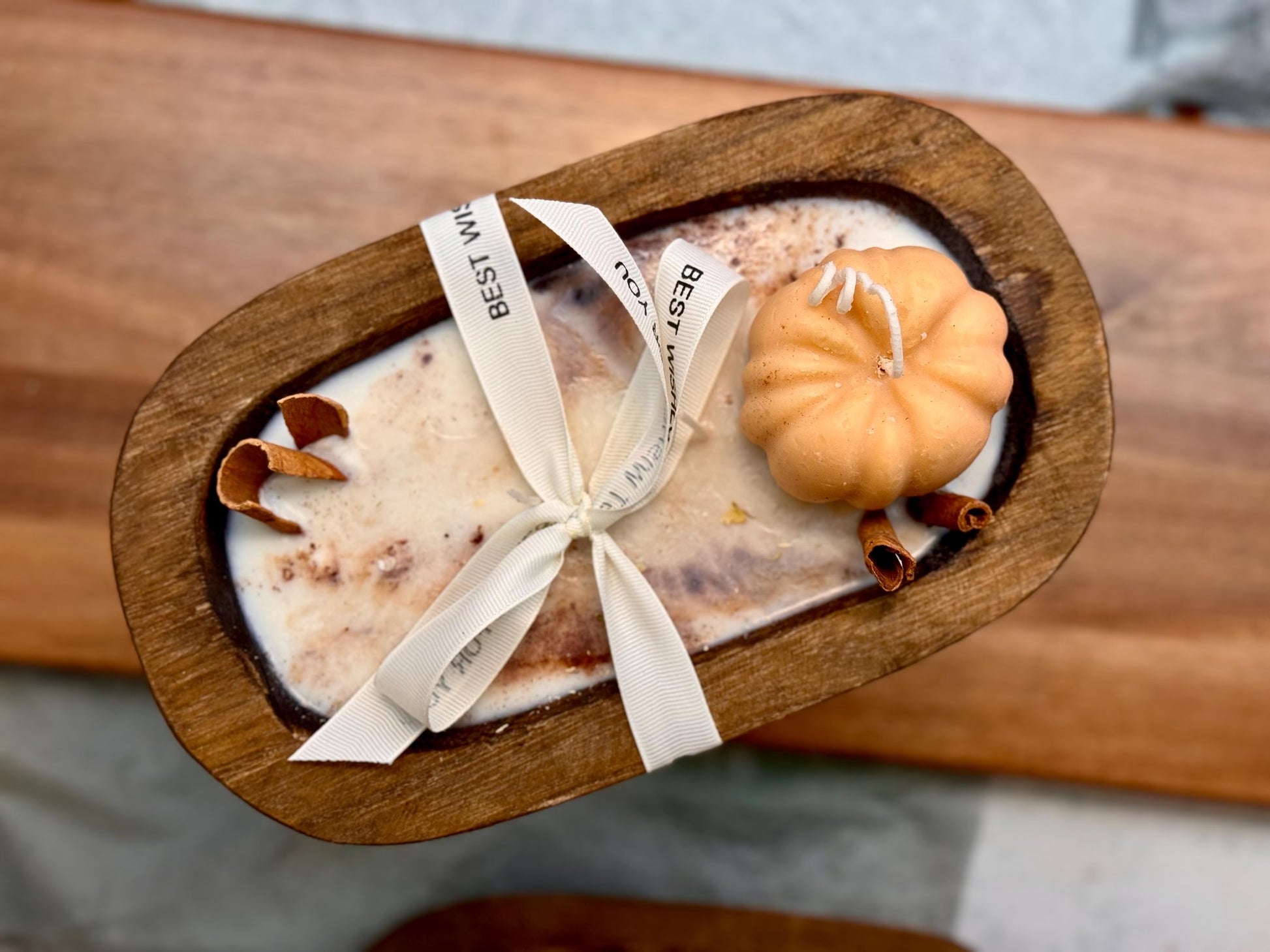 Wooden dough bowl Thanksgiving Candles